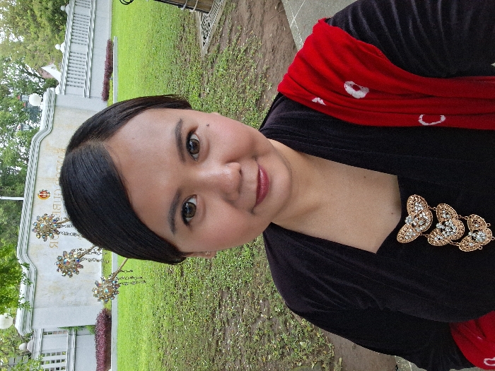 - "A female individual is depicted in a direct-gaze, selfie-style portrait, wearing a black long-sleeved velvet top, possibly a *kebaya*, fastened with a gold-colored three-tiered brooch featuring heart-shaped segments adorned with clear stones" by FM-2BqEw2, licensed under CC BY 4.0