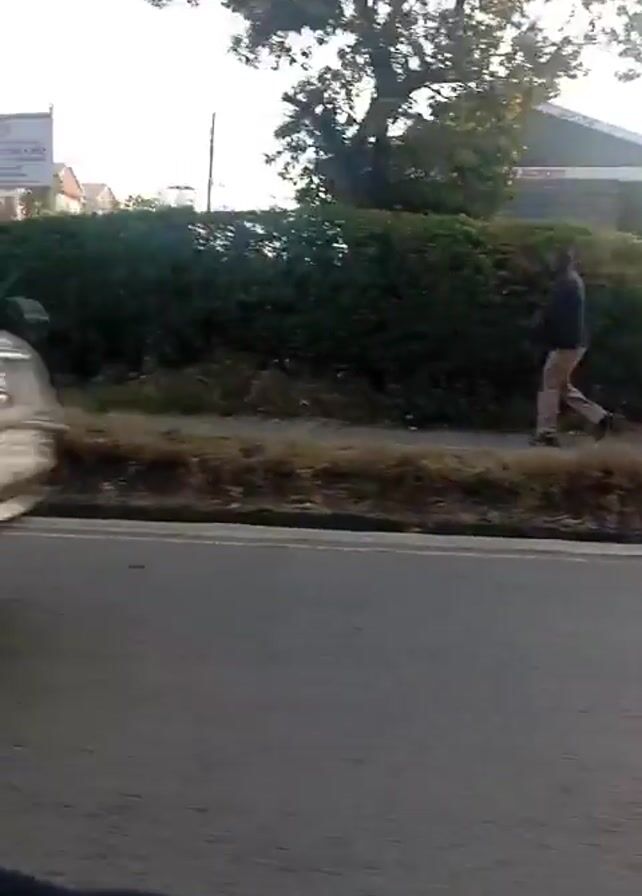 The video, taken from a moving vehicle, shows a street scene in what appears to be a residential area