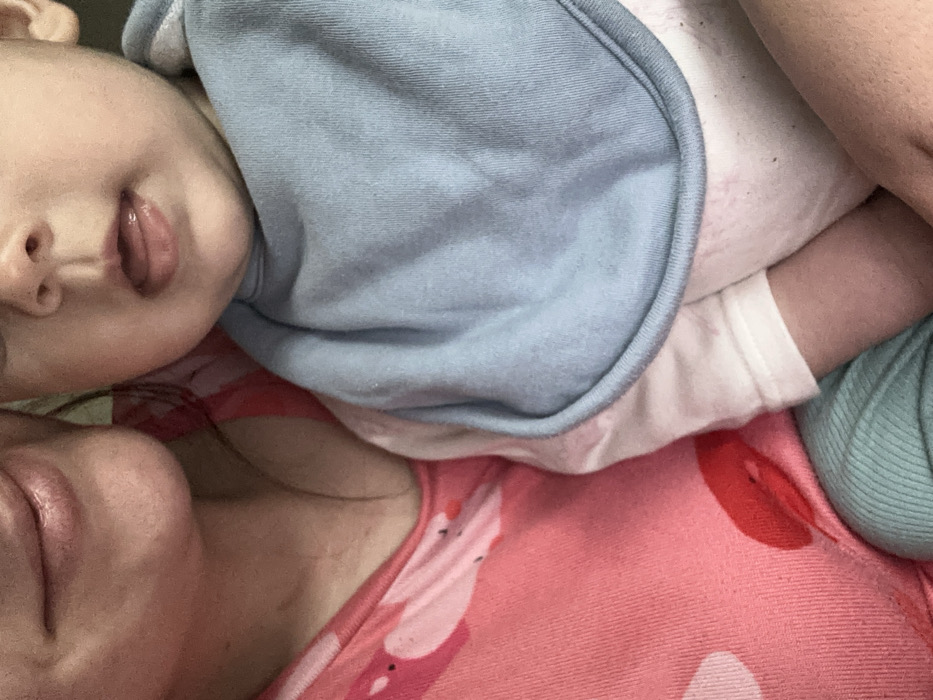 - "The image displays a close-up, partial view of an adult holding an infant in what appears to be an indoor setting" by FM-kBeqb2, licensed under CC BY 4.0