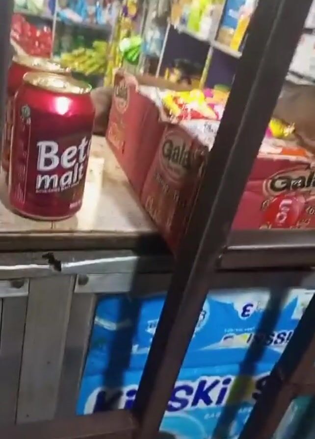 A brief video shows a small convenience store