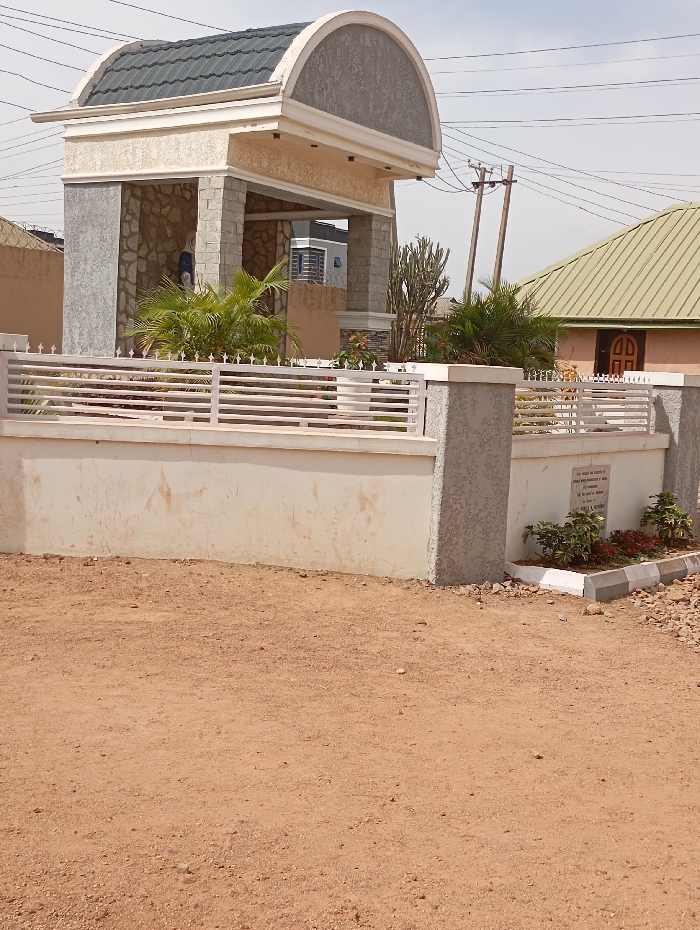 The image displays an outdoor scene in Unknown, Unknown, dominated by a property entrance under clear daylight