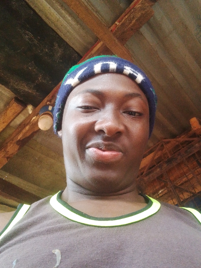 The image depicts an adult individual in a close-up indoor portrait, located in Okura, Nigeria