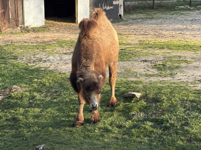 - "A single adult Bactrian camel, possessing brown, shaggy fur and distinctly broad humps, stands in an outdoor enclosure" by FM-QK5pm1, licensed under CC BY 4.0