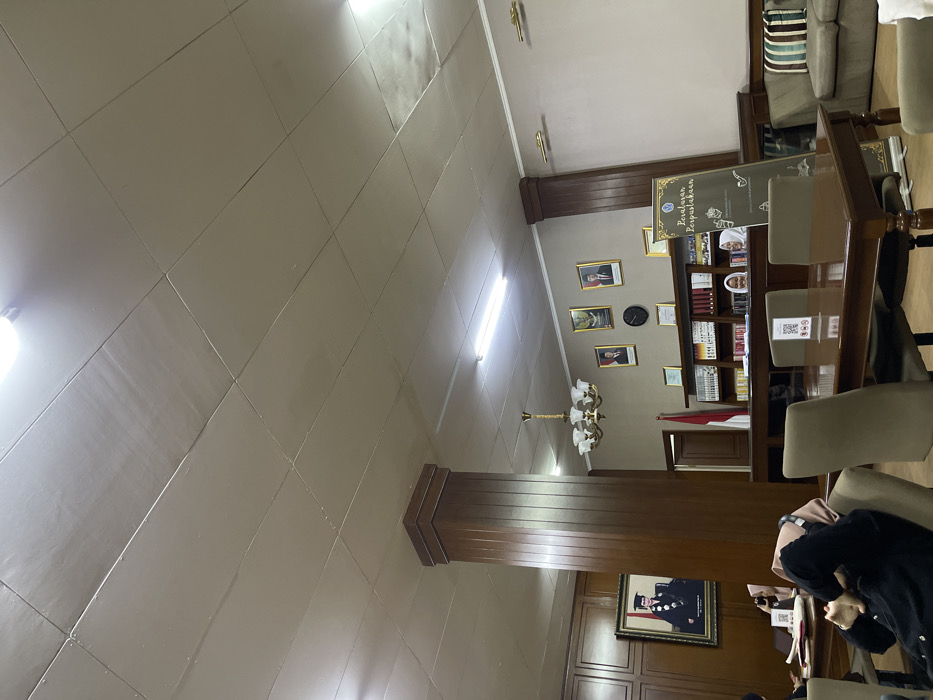 The image depicts an indoor scene within a library or study hall in Muka, Indonesia