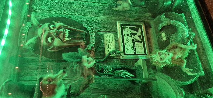 This image depicts a display case within the Museum of the Weird, located in Austin, Texas, United States of America
