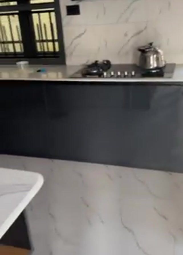 The video presents a modern kitchen