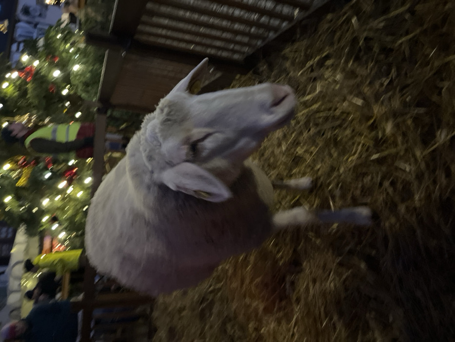 - "The image depicts a white sheep standing on a bed of hay or straw within a fenced enclosure, located in Meisenheim, Germany" by FM-4GKkh1, licensed under CC BY 4.0