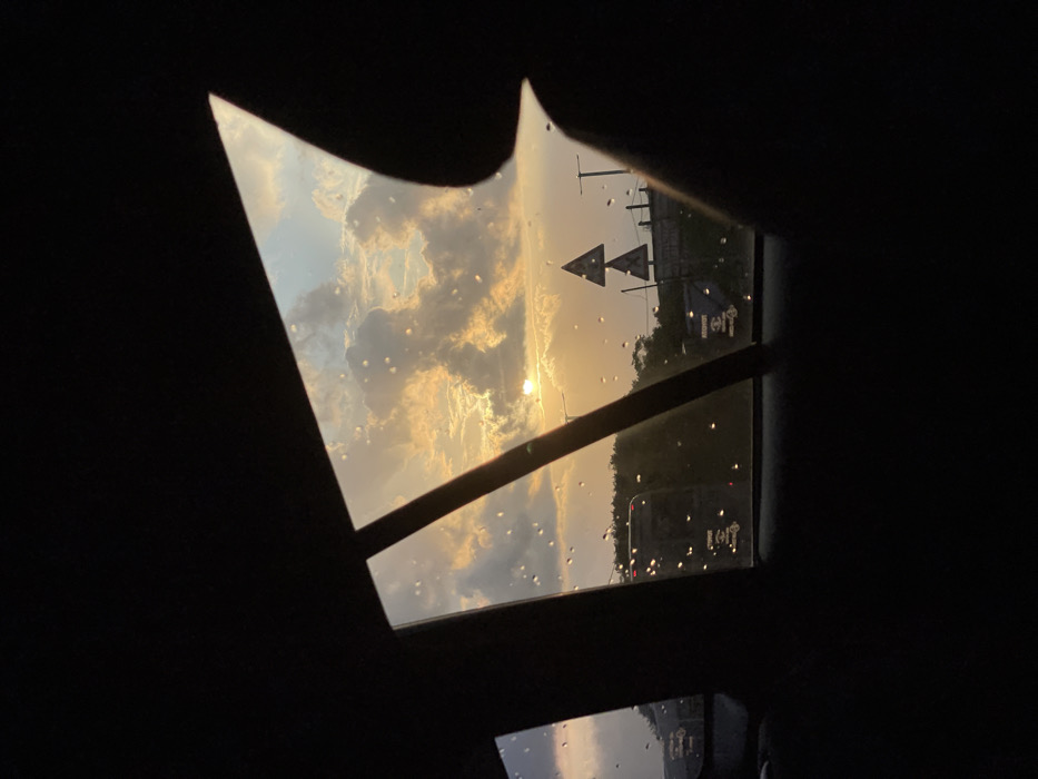 - "The image captures an exterior view through a rain-spattered rear passenger window of a dark vehicle, overlooking a road in Herzliya, Israel, during a sunset or sunrise" by FM-AyUtz1, licensed under CC BY 4.0