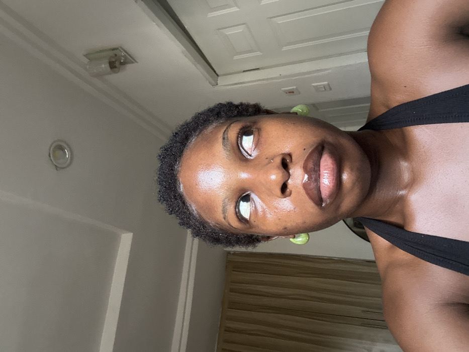 An image captured indoors shows a Black female subject from the chest up, positioned centrally