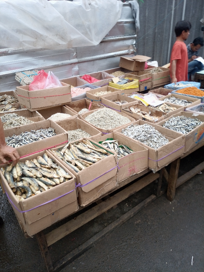 - "Assorted dried fish fill cardboard boxes on a weathered wooden table, likely at a market" by FM-Jri2t1, licensed under CC BY 4.0