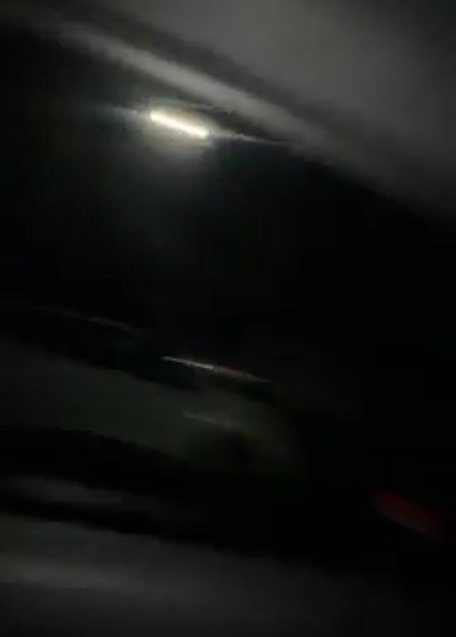 A person is shown sitting in the passenger seat of a car. They are looking towards the camera. The camera pans down to show their legs crossed in the front seat and a hand resting on their leg. The interior of the car is dark and there are lights visible outside.