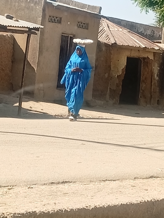 - "A lone woman is depicted walking on an unpaved, light brown road in Sumaila, Nigeria" by FM-hpfnF2, licensed under CC BY 4.0