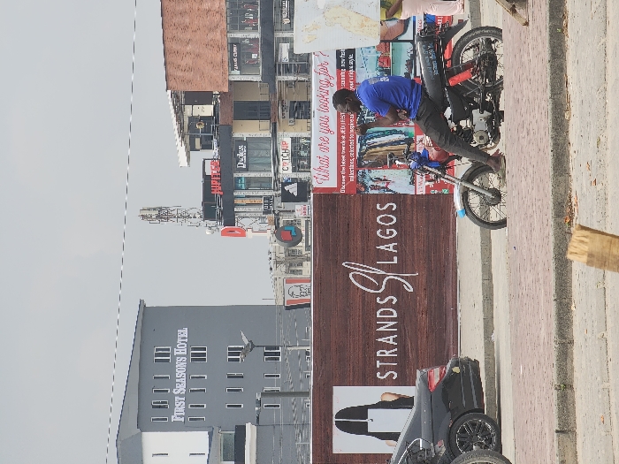 - "An urban street scene in Lagos, Nigeria, features a man on a motorcycle in the foreground, facing right" by FM-Ufhzn1, licensed under CC BY 4.0