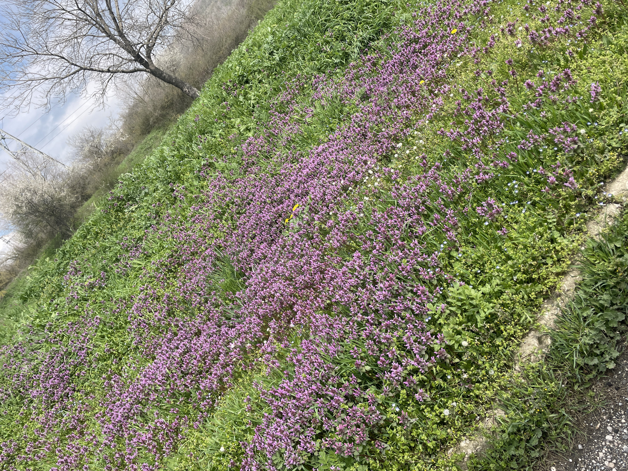 - "A ground-level, slightly angled shot depicts a grassy hillside densely populated with purple flowers, likely in the city of Devnya, Bulgaria" by FM-bmIGj1, licensed under CC BY 4.0