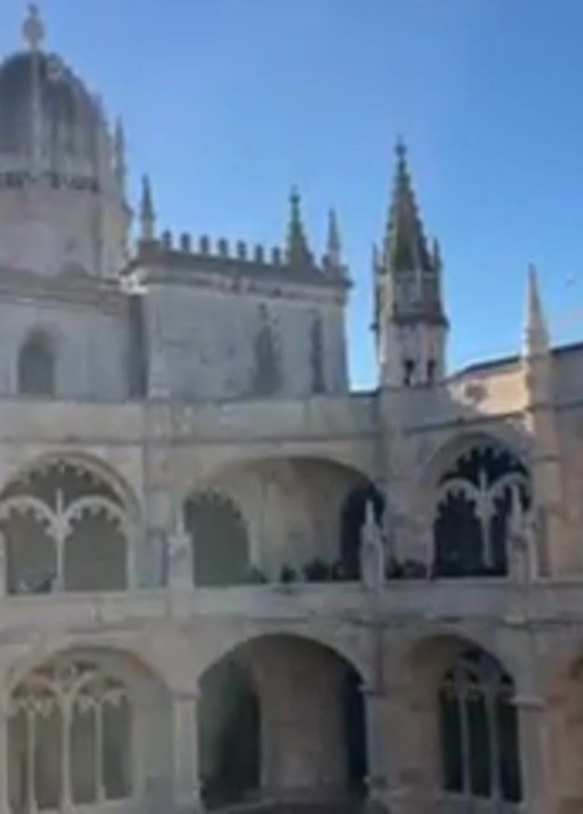 courtyard of a large, light-colored stone building, likely a monastery or palace