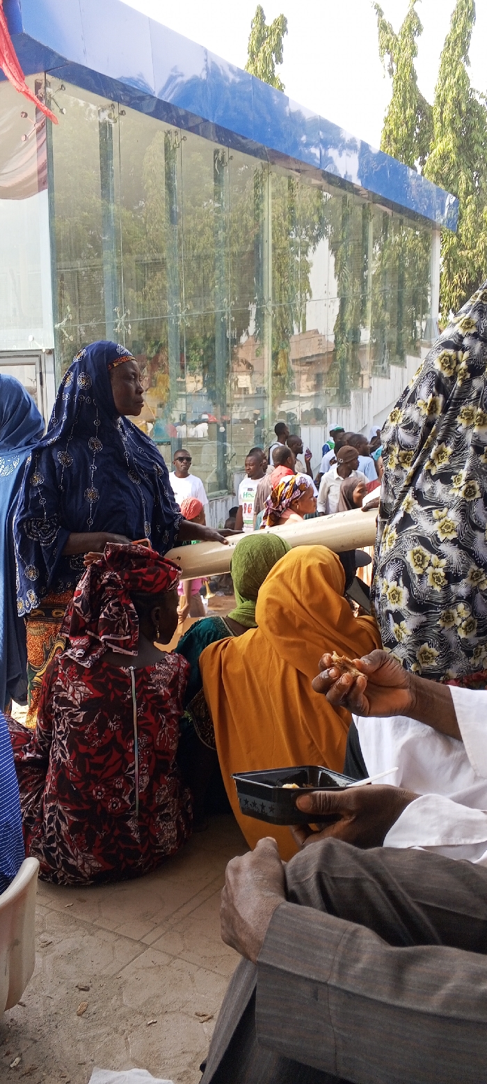 The image depicts an outdoor gathering in Lafia, Nigeria, during daylight hours