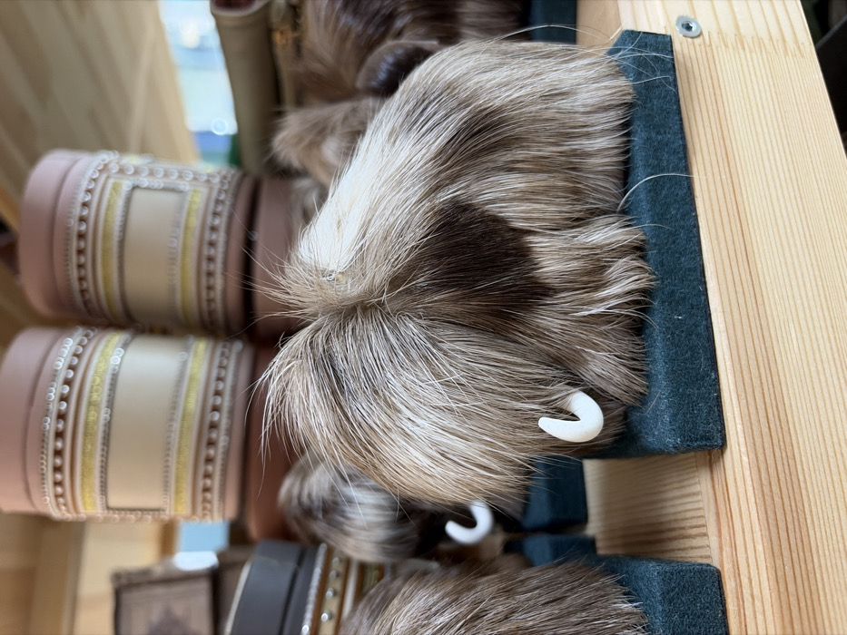 - "close-up of hairpieces with a brown and white color scheme" by FM-Opnib2, licensed under CC BY 4.0