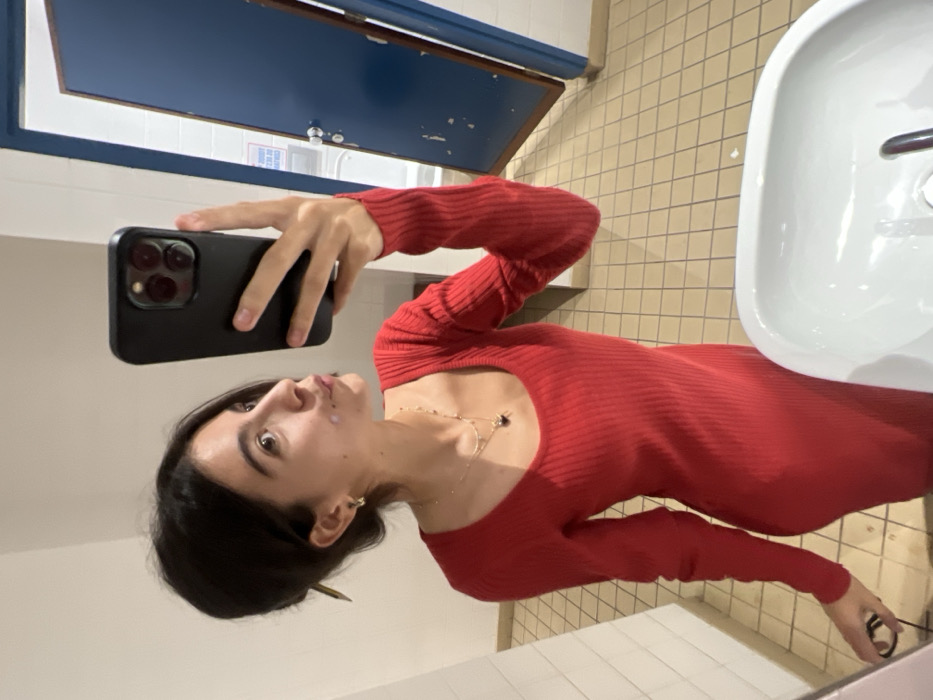 - "A young female, of apparent Mediterranean descent, is depicted in a mirror selfie within what appears to be a public restroom in Porto, Portugal" by FM-4RHLh2, licensed under CC BY 4.0