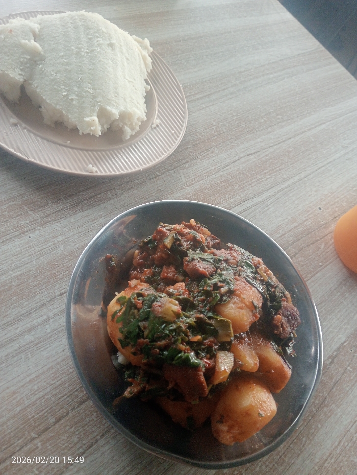 - "The image, captured on February 20, 2026, at 15:49, depicts a meal set on a light-colored, wood-grain patterned table surface in Nakuru, Kenya" by FM-i1sKz1, licensed under CC BY 4.0