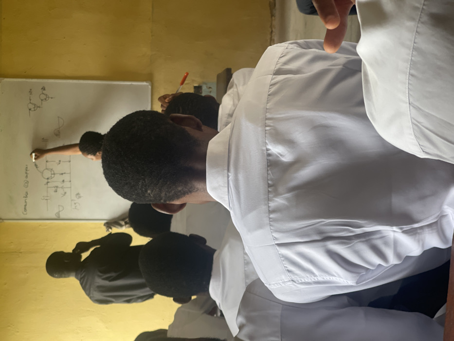 The image depicts an indoor classroom environment located in Uturu, Nigeria
