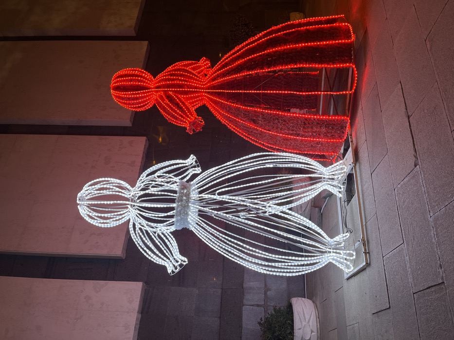 - "The scene depicts two large, illuminated decorative figures at night on a paved walkway in Veliko Tarnovo, Bulgaria" by FM-RY5jV2, licensed under CC BY 4.0