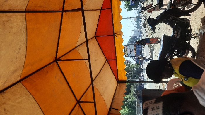 - "The image captures an outdoor scene in Panshekara, Nigeria, viewed from beneath a large, multi-panel canopy" by FM-H3n4y1, licensed under CC BY 4.0