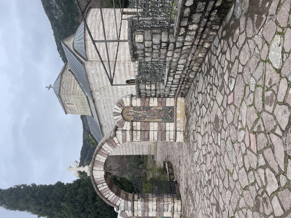 This image depicts the exterior of the Monastery Praskvica, located in the municipality of Budva, Montenegro