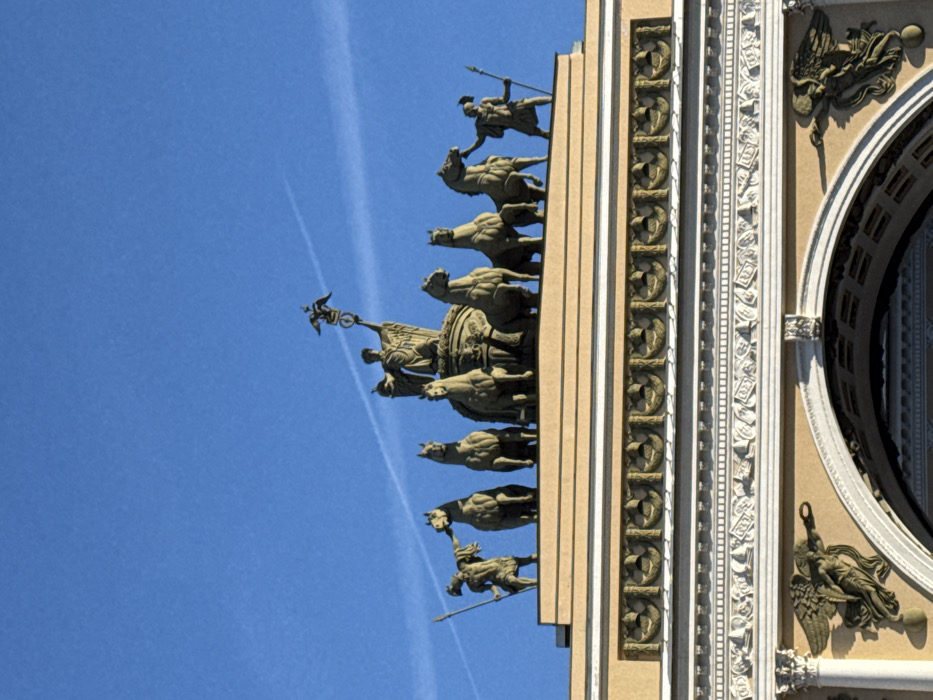 - "The image displays a close-up of the sculptural group surmounting the Triumphal Arch of the General Staff Building in Palace Square, Saint Petersburg, Russia" by FM-dzyDF3, licensed under CC BY 4.0