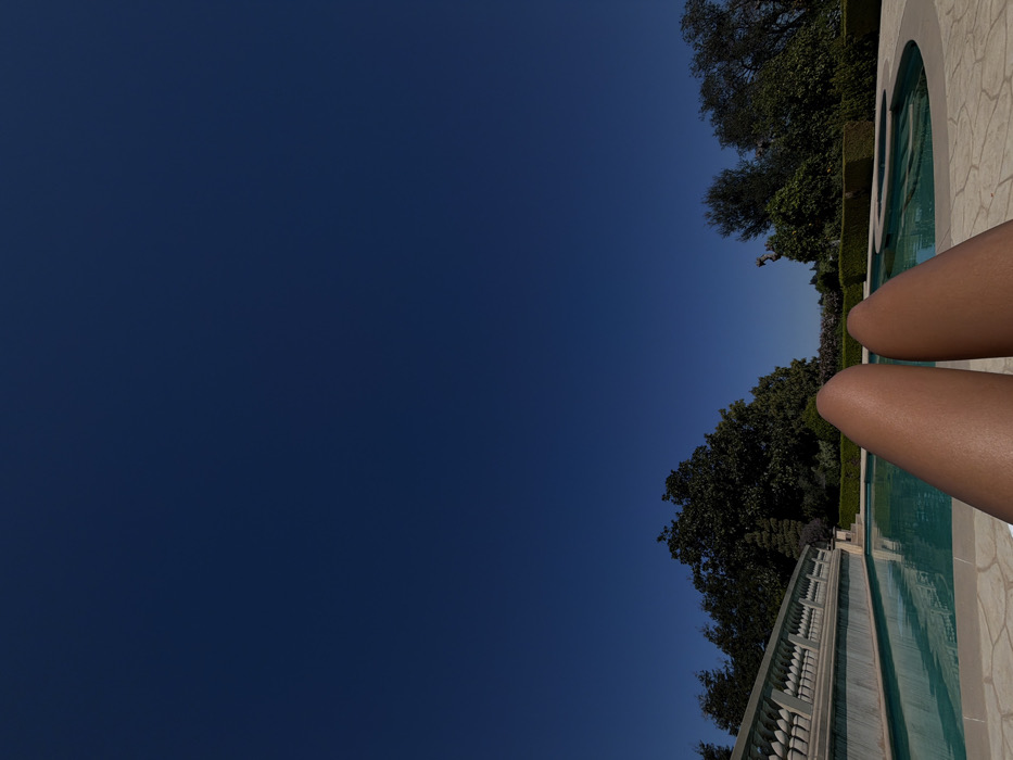 - "The image presents a first-person, low-angle view from a reclining position at a luxury estate in Los Angeles, California, United States of America" by FM-fIpHD2, licensed under CC BY 4.0