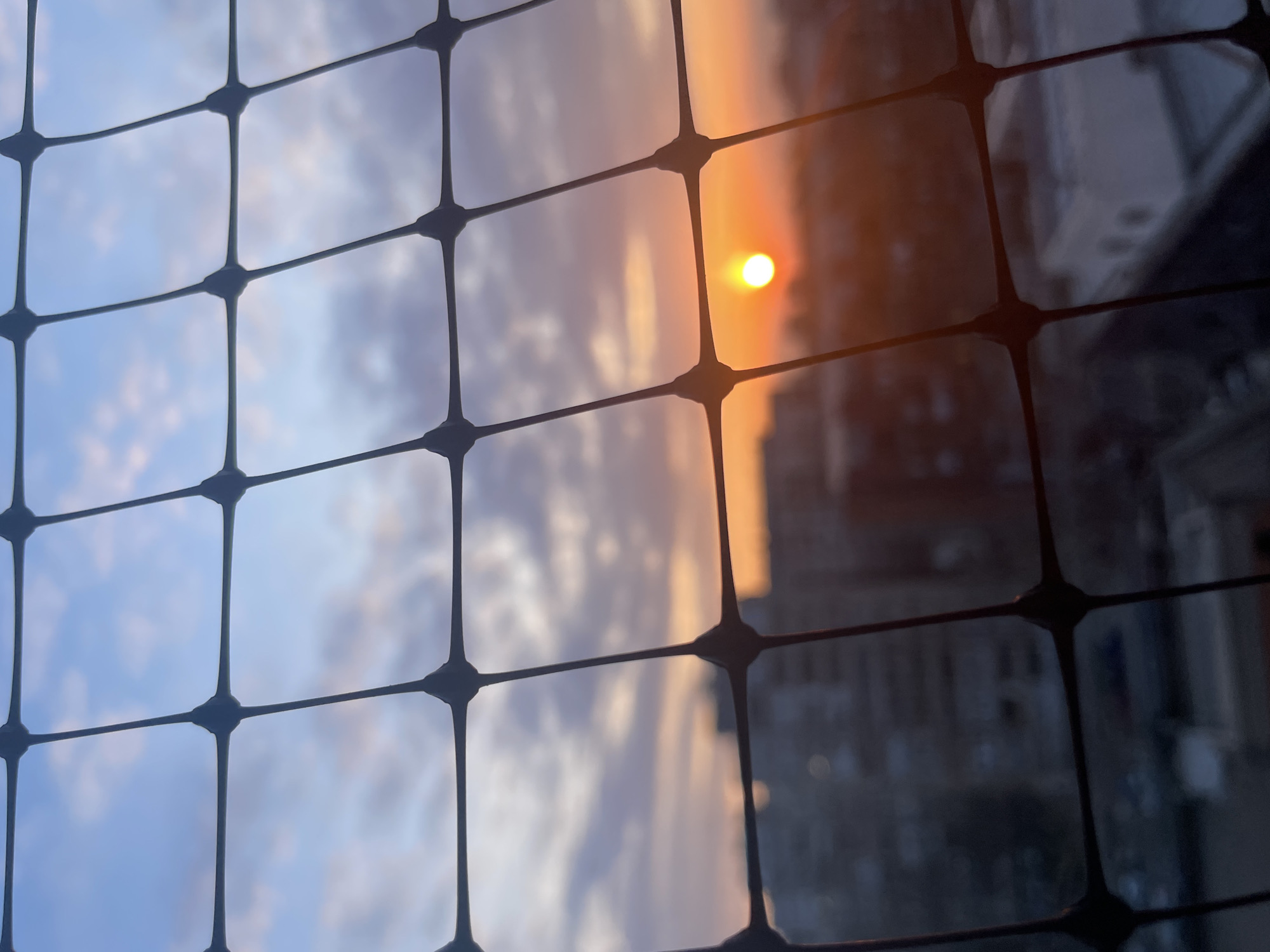 - "A high-angle, out-of-focus shot captures a sunset over an urban area in Novi Sad, Serbia, viewed through a black, square-patterned protective netting" by FM-TPdMu1, licensed under CC BY 4.0