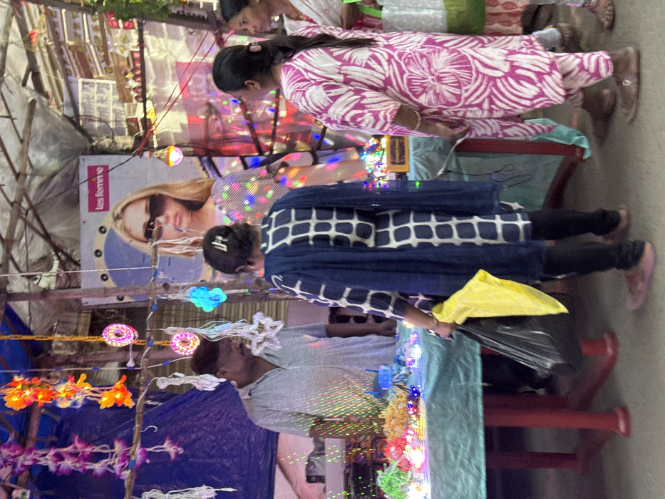 - "This image depicts an outdoor market stall in the city of Howrah, India, likely at dusk or night, under a blue tarpaulin canopy supported by a rough wooden and metal frame" by FM-KoaHv1, licensed under CC BY 4.0