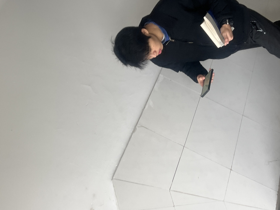 - "A person stands on a tiled floor, holding a phone in one hand and a book in the other" by FM-AH4jy2, licensed under CC BY 4.0