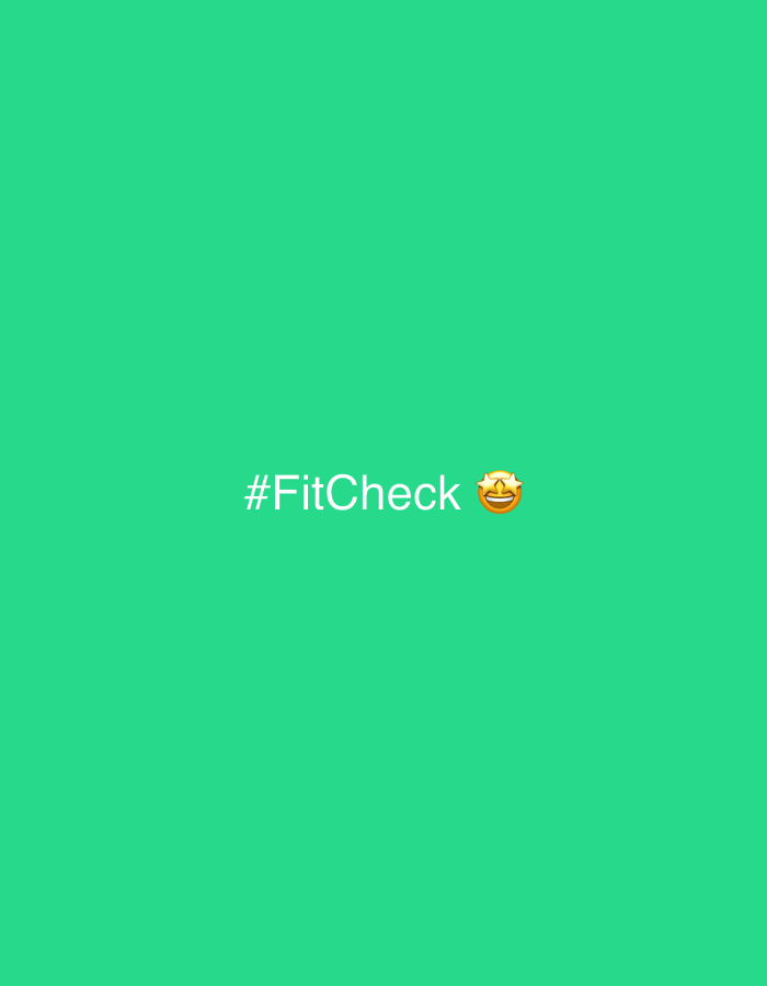 - "The image is a digital graphic depicting white text "#FitCheck" immediately followed by a smiling face with star eyes emoji" by FM-TGq7I2, licensed under CC BY 4.0