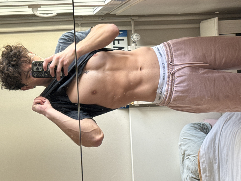 A young male, with curly brown hair and wearing glasses, is depicted in a mirror selfie taken with a dark-colored smartphone