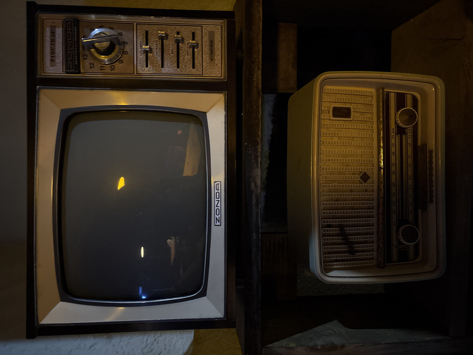 - "This image, situated in Cuernavaca, Mexico, displays a vertical arrangement of two vintage electronic devices within a dimly lit indoor setting" by FM-5IzOH3, licensed under CC BY 4.0