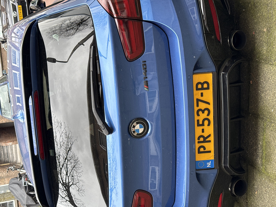 - "The image displays the rear exterior of a blue BMW M140i hatchback, parked on an urban surface in The Hague, Netherlands" by FM-4p8pq1, licensed under CC BY 4.0