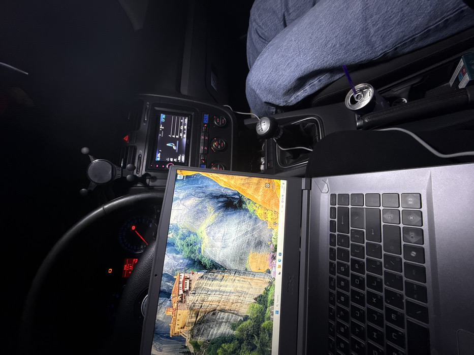 - "The image captures the dimly lit interior of a vehicle, located in the city of Popovo, Bulgaria, viewed from an elevated perspective near the driver's seat" by FM-SkOFI2, licensed under CC BY 4.0