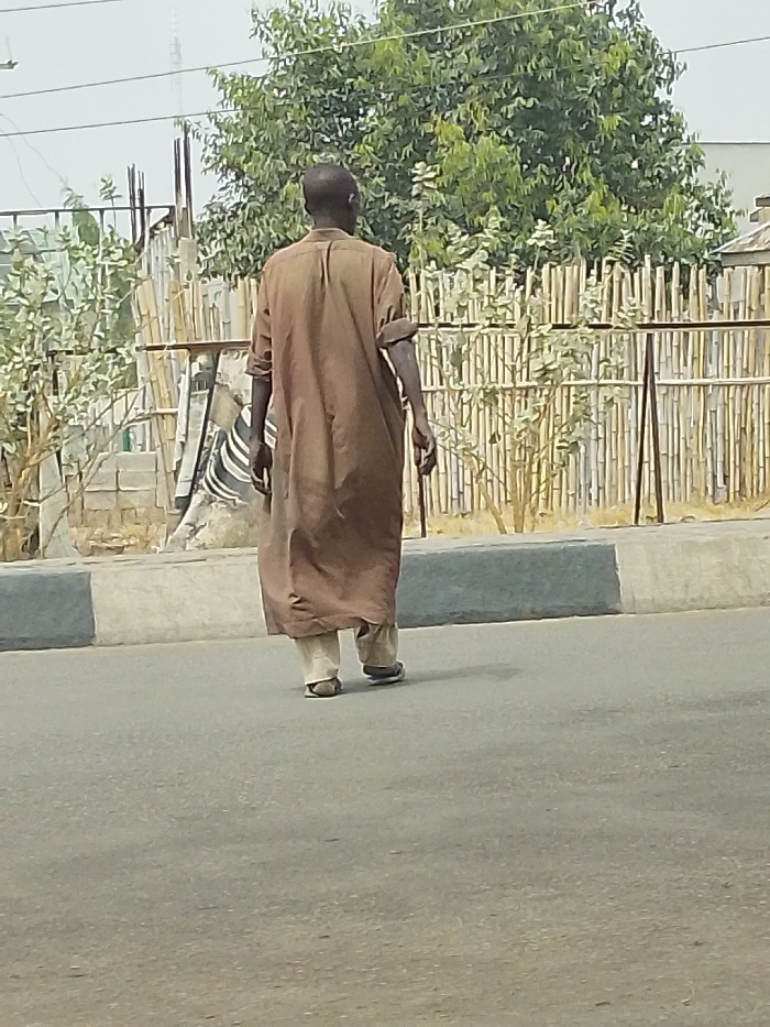 - "An adult male, viewed from behind, walks from right to left across a paved asphalt road in Daurawa, Nigeria" by FM-WfIwR2, licensed under CC BY 4.0