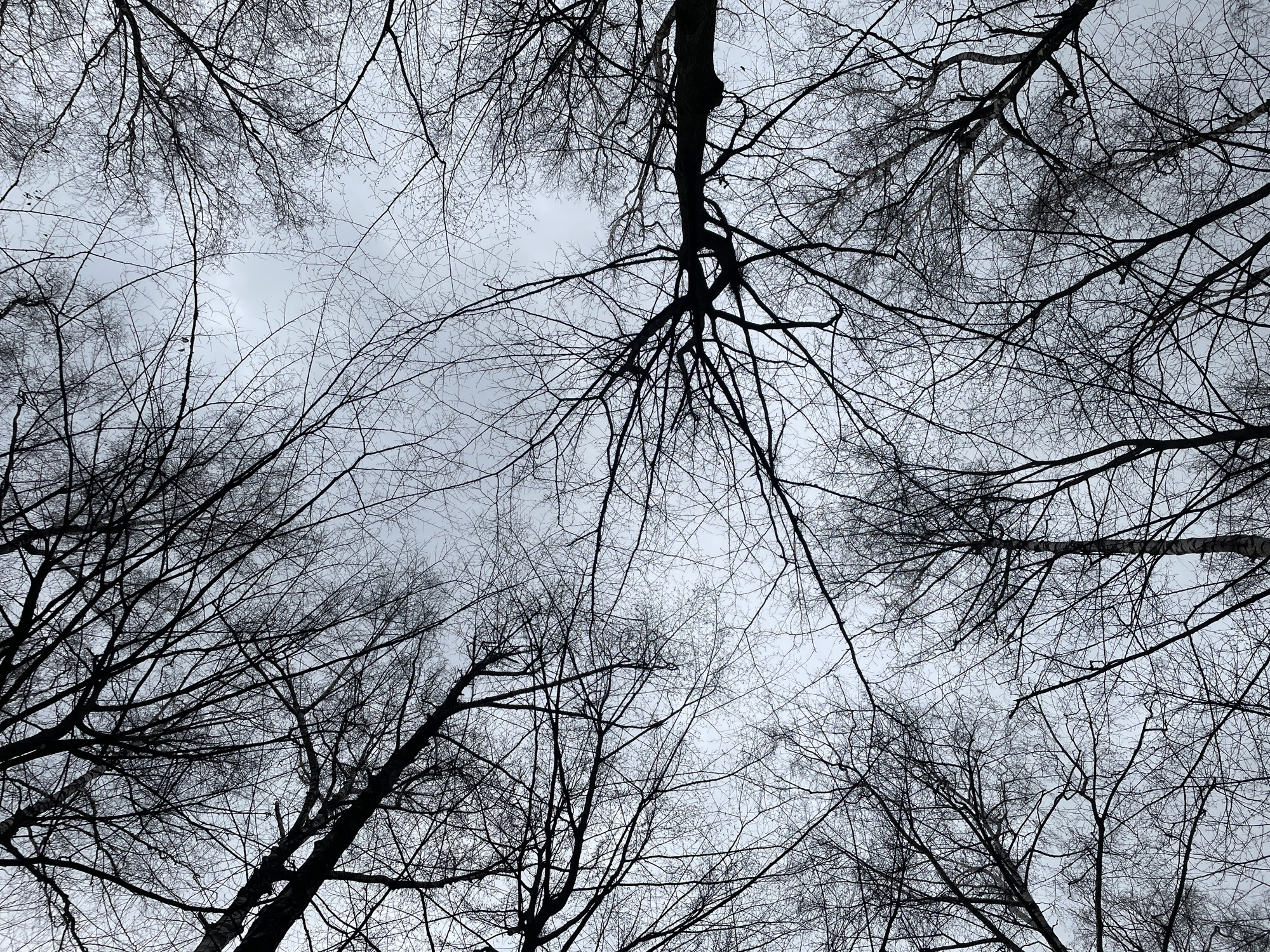 - "The image is a low-angle shot looking up into a dense canopy of bare tree branches against an overcast sky" by FM-3Nf8v2, licensed under CC BY 4.0