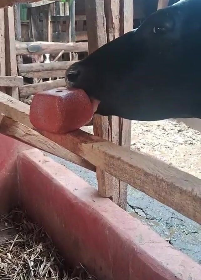 - "A black and white cow, identified by an ear tag as "Grace, Silverstone Farm," is licking a red salt lick in what appears to be a barn" by FM-UrRWw2, licensed under CC BY 4.0