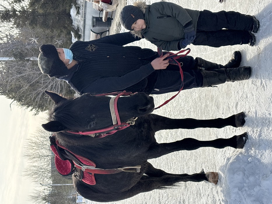 - "An outdoor scene in a snow-covered public park in Astana, Kazakhstan, features a black horse, an adult male, and a young child" by FM-Ju5AS2, licensed under CC BY 4.0