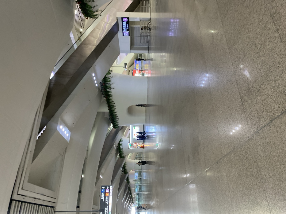 modern airport terminal or shopping mall interior, emphasizing the architecture and lighting