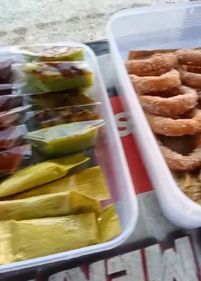 tabletop display of Indonesian snacks and desserts, presumably for sale