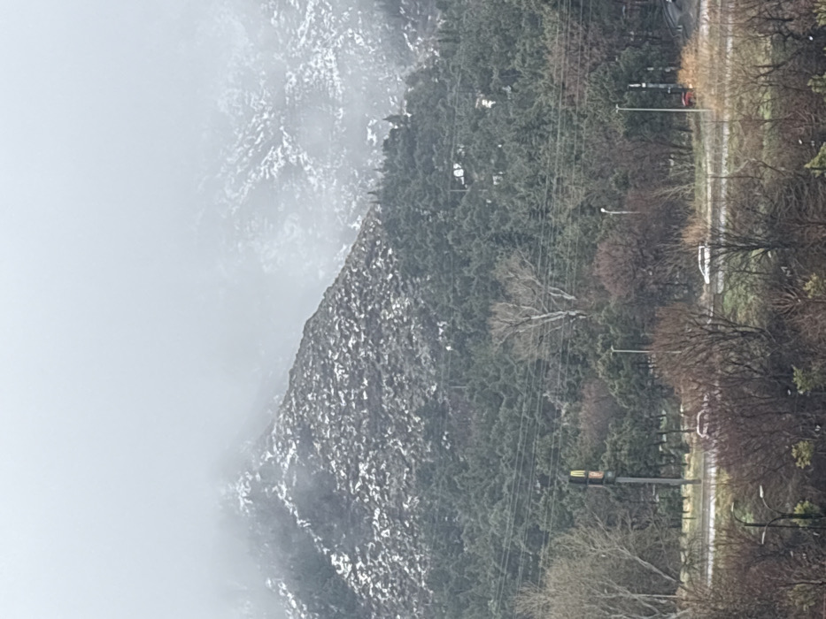 - "The image depicts a panoramic landscape on an overcast day, likely winter or early spring, characterized by a low-hanging, gray sky and fog obscuring the upper reaches of mountains in the background" by FM-c4VUG2, licensed under CC BY 4.0