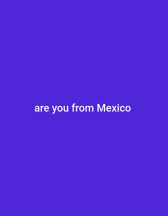 The image displays a digital graphic with a solid, uniform purple background. White, sans-serif text is centrally aligned in the lower-middle portion of the frame. The text reads: "are you from Mexico". No people, physical objects, actions, or interactions are depicted. The environment is purely abstract, consisting solely of the colored background and overlaying text. There is no visual information present within the image to indicate a specific physical location, including the city of Yelwa, Nigeria.