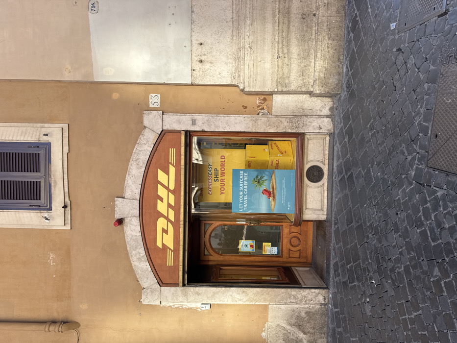 - "The image depicts the exterior of a DHL Express store located at Via del Governo Vecchio 53, in Rome, Italy" by FM-4DZAk2, licensed under CC BY 4.0