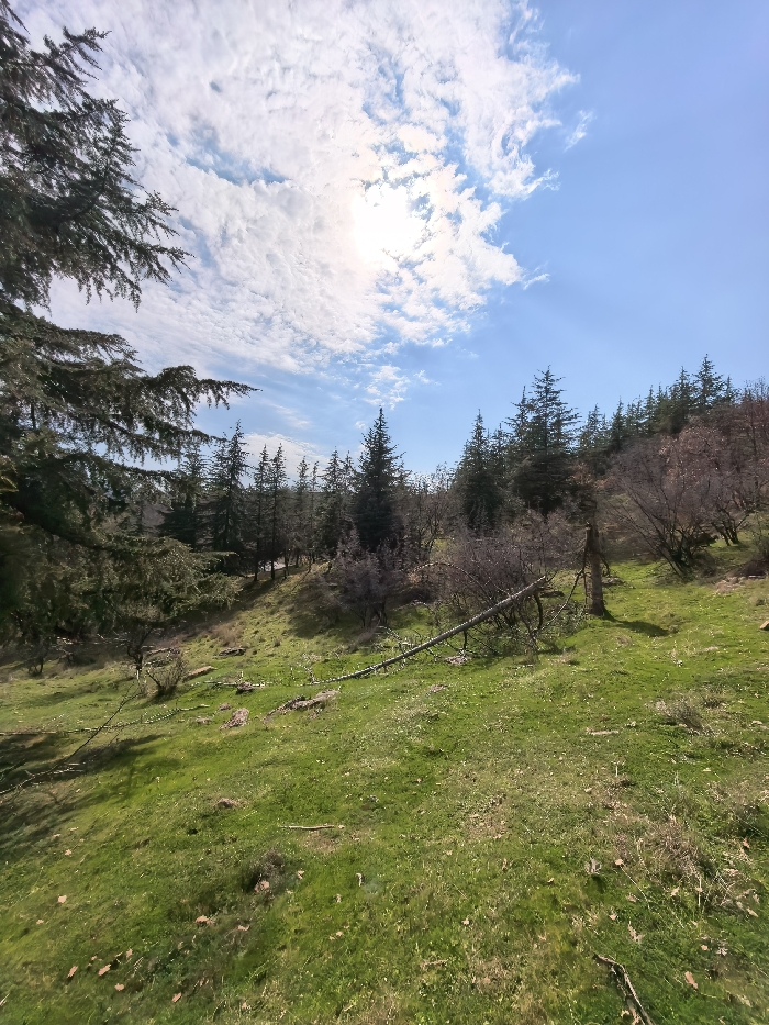 - "The scene depicts a natural, undeveloped hillside under a bright, sunny sky with scattered white clouds" by FM-PbA122, licensed under CC BY 4.0