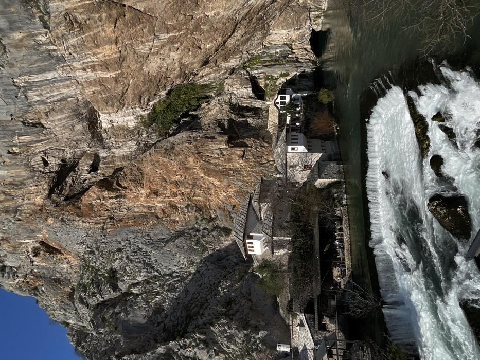 - "The image depicts a panoramic view of the Blagaj Tekke complex situated at the base of a large, craggy limestone cliff face in Dračevice, Bosnia and Herzegovina" by FM-oln9s2, licensed under CC BY 4.0