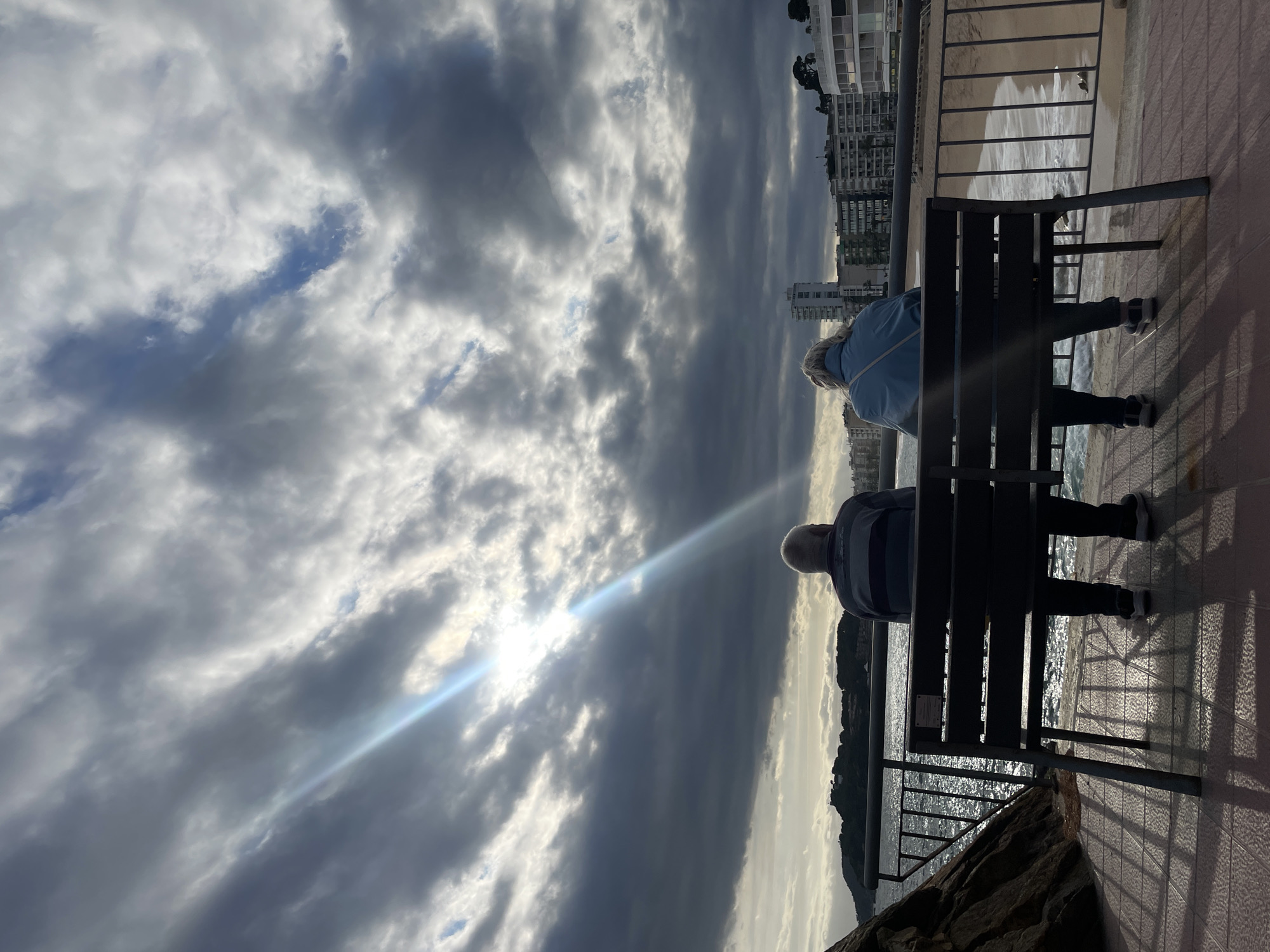 - "The image displays two individuals, observed from behind, seated on a dark slatted bench on a tiled coastal promenade in Lloret de Mar, Spain" by FM-T5EOT2, licensed under CC BY 4.0