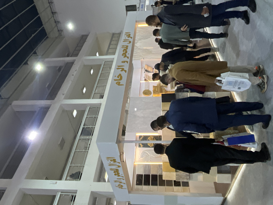 This image depicts an indoor exhibition hall within the city of Shab'a, Syria